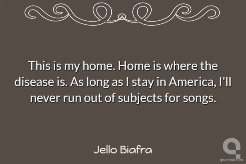 This is my home. Home is where the disease is. As long as I stay in America, I'll never run out of subjects for songs.