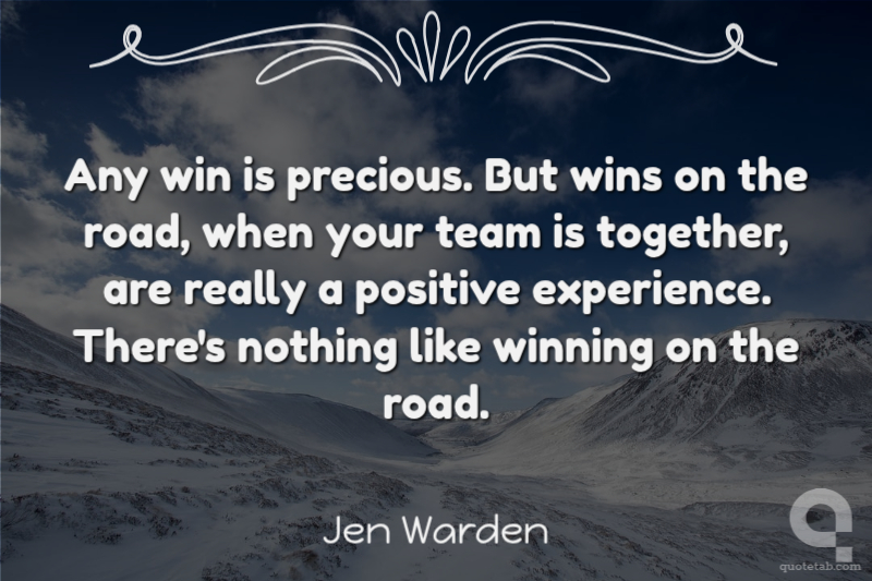 Any win is precious. But wins on the road, when your team is together, are really a positive experience. There's nothing like winning on the road.