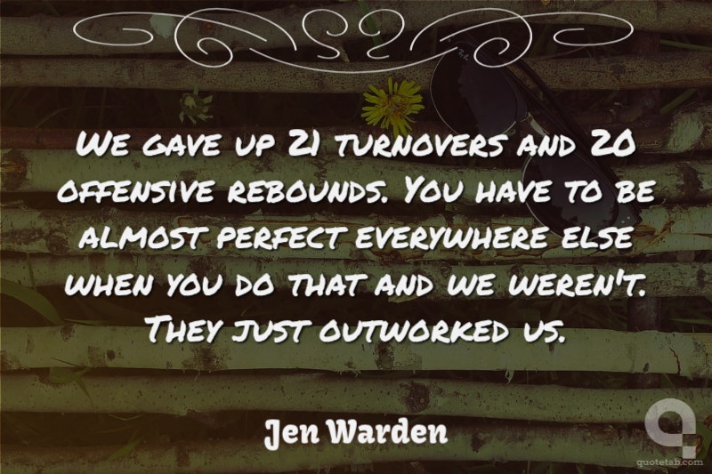 We gave up 21 turnovers and 20 offensive rebounds. You have to be almost perfect everywhere else when you do that and we weren't. They just outworked us.