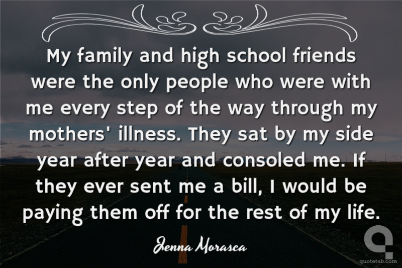My family and high school friends were the only people who were with me every step of the way through my mothers' illness. They sat by my side year after year and consoled me. If they ever sent me a bill, I would be paying them off for the rest of my life.