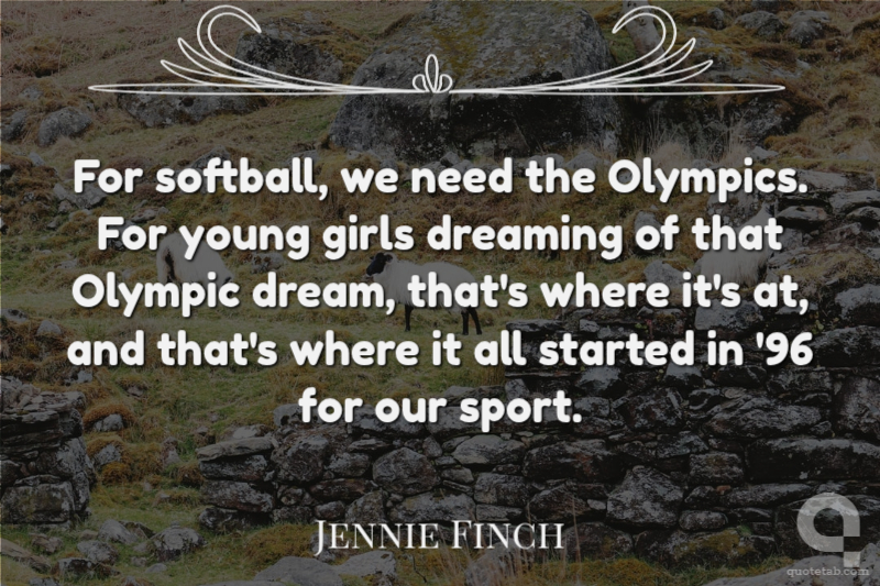 For softball, we need the Olympics. For young girls dreaming of that Olympic dream, that's where it's at, and that's where it all started in '96 for our sport.