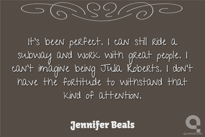 It's been perfect. I can still ride a subway and work with great people. I can't imagine being Julia Roberts. I don't have the fortitude to withstand that kind of attention.