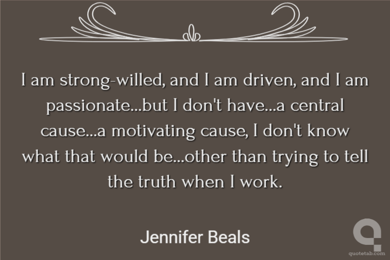 I am strong-willed, and I am driven, and I am passionate...but I don't have...a central cause...a motivating cause, I don't know what that would be...other than trying to tell the truth when I work.