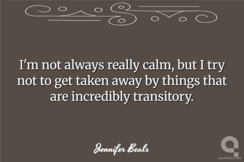 I'm not always really calm, but I try not to get taken away by things that are incredibly transitory.