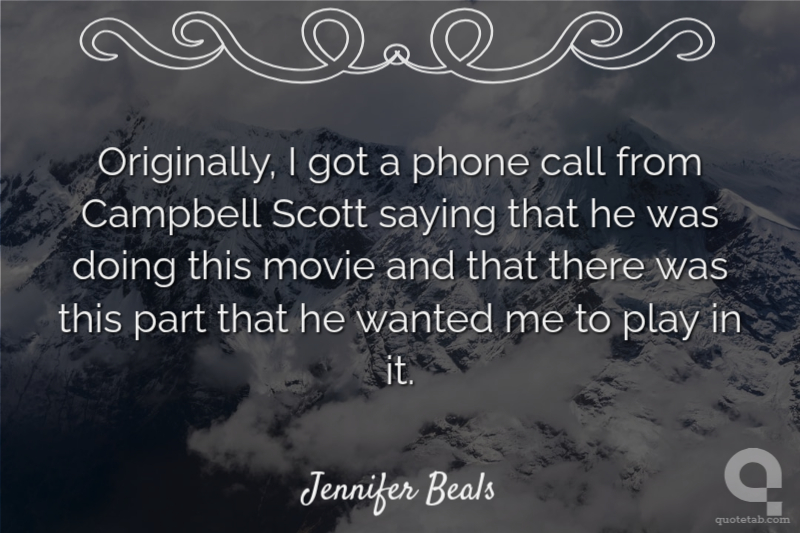 Originally, I got a phone call from Campbell Scott saying that he was doing this movie and that there was this part that he wanted me to play in it.