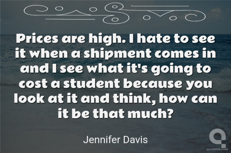 Prices are high. I hate to see it when a shipment comes in and I see what it's going to cost a student because you look at it and think, how can it be that much?