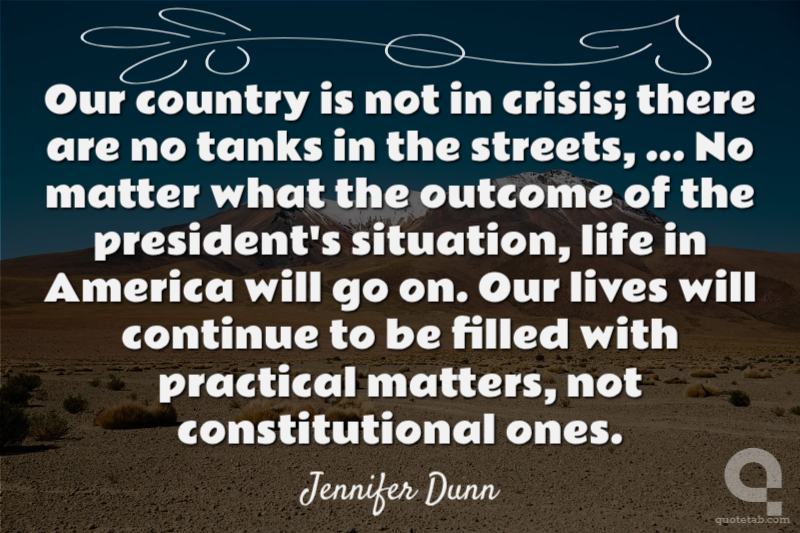 Our country is not in crisis; there are no tanks in the streets, ... No matter what the outcome of the president's situation, life in America will go on. Our lives will continue to be filled with practical matters, not constitutional ones.