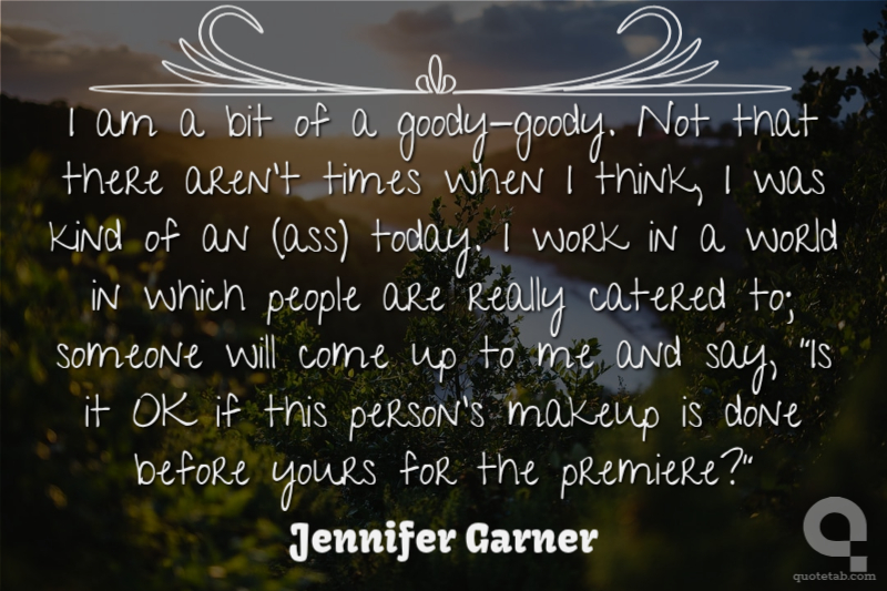 I am a bit of a goody-goody. Not that there aren't times when I think, I was kind of an (ass) today. I work in a world in which people are really catered to; someone will come up to me and say, "Is it OK if this person's makeup is done before yours for the premiere?"