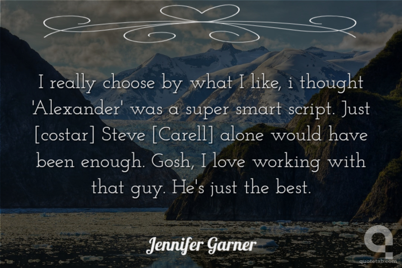 I really choose by what I like, i thought 'Alexander' was a super smart script. Just [costar] Steve [Carell] alone would have been enough. Gosh, I love working with that guy. He's just the best.