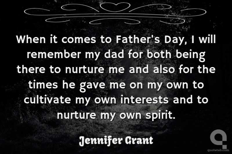 When it comes to Father's Day, I will remember my dad for both being there to nurture me and also for the times he gave me on my own to cultivate my own interests and to nurture my own spirit.