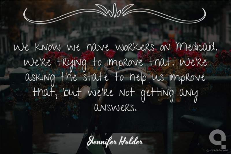 We know we have workers on Medicaid. We're trying to improve that. We're asking the state to help us improve that, but we're not getting any answers.