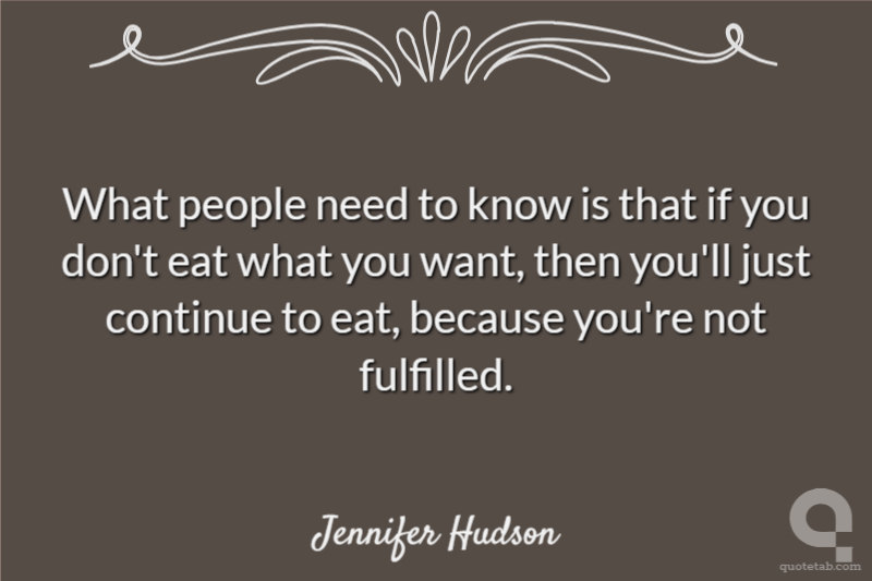 What people need to know is that if you don't eat what you want, then you'll just continue to eat, because you're not fulfilled.