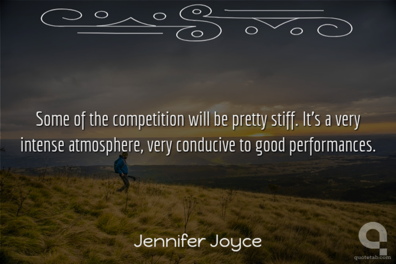 Some of the competition will be pretty stiff. It's a very intense atmosphere, very conducive to good performances.