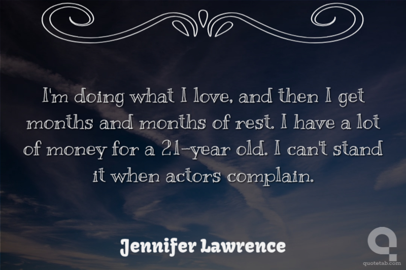 I'm doing what I love, and then I get months and months of rest. I have a lot of money for a 21-year old. I can't stand it when actors complain.