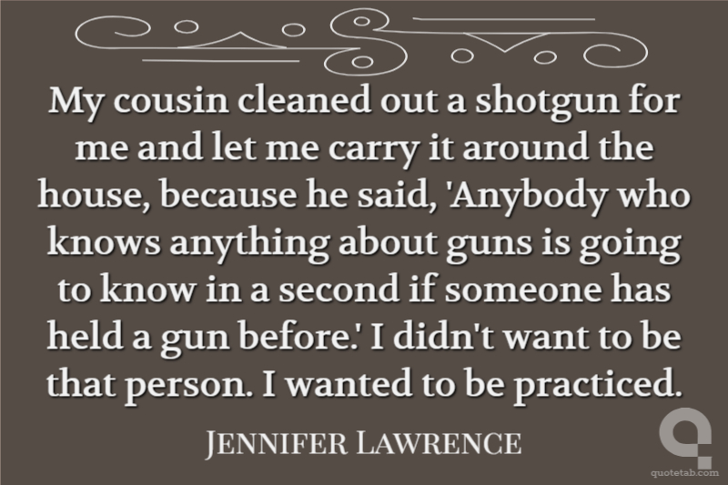 My cousin cleaned out a shotgun for me and let me carry it around the house, because he said, 'Anybody who knows anything about guns is going to know in a second if someone has held a gun before.' I didn't want to be that person. I wanted to be practiced.