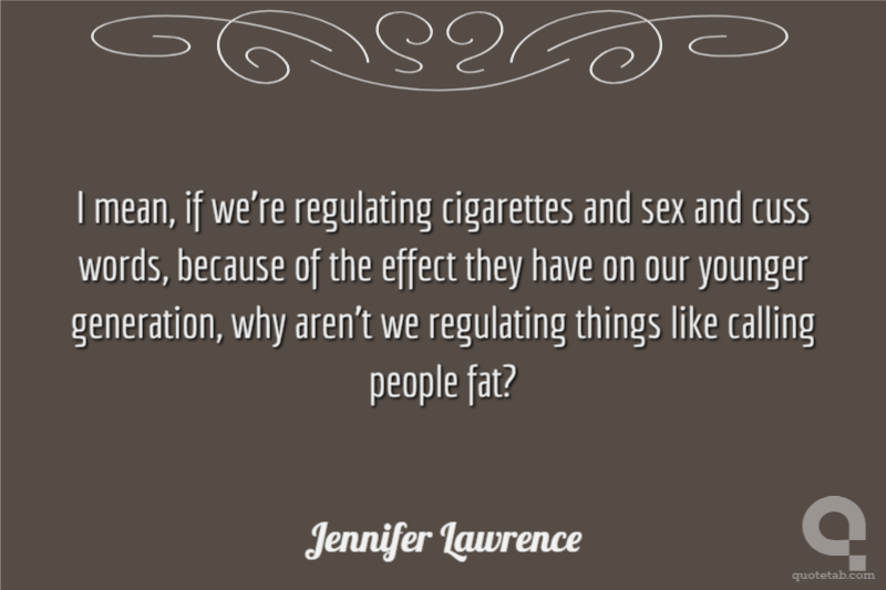 I mean, if we're regulating cigarettes and sex and cuss words, because of the effect they have on our younger generation, why aren't we regulating things like calling people fat?