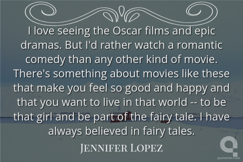 I love seeing the Oscar films and epic dramas. But I'd rather watch a romantic comedy than any other kind of movie. There's something about movies like these that make you feel so good and happy and that you want to live in that world -- to be that girl and be part of the fairy tale. I have always believed in fairy tales.