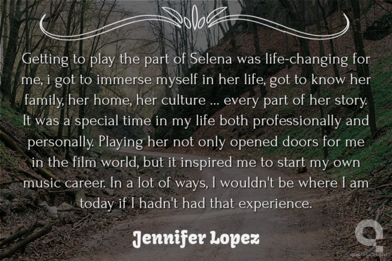 Getting to play the part of Selena was life-changing for me, i got to immerse myself in her life, got to know her family, her home, her culture ... every part of her story. It was a special time in my life both professionally and personally. Playing her not only opened doors for me in the film world, but it inspired me to start my own music career. In a lot of ways, I wouldn't be where I am today if I hadn't had that experience.