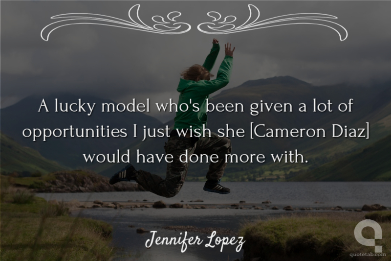 A lucky model who's been given a lot of opportunities I just wish she [Cameron Diaz] would have done more with.