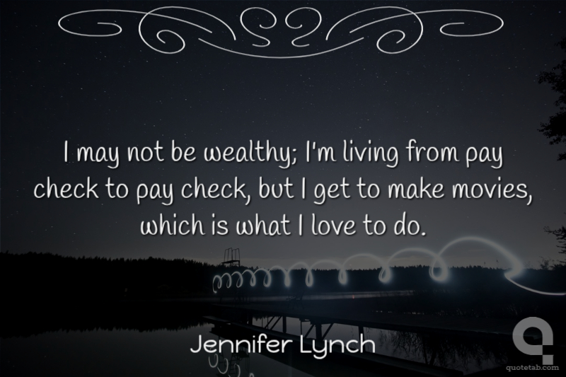 I may not be wealthy; I'm living from pay check to pay check, but I get to make movies, which is what I love to do.