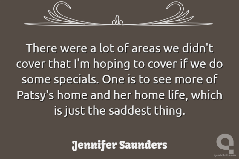 There were a lot of areas we didn't cover that I'm hoping to cover if we do some specials. One is to see more of Patsy's home and her home life, which is just the saddest thing.