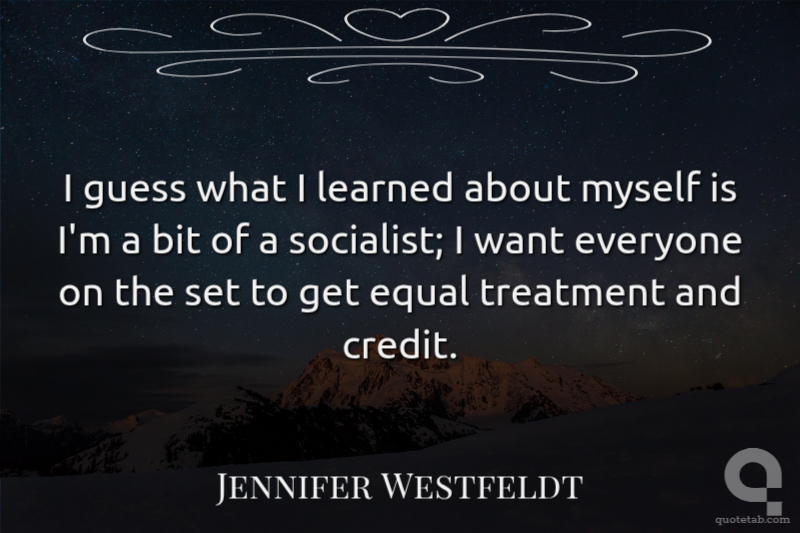I guess what I learned about myself is I'm a bit of a socialist; I want everyone on the set to get equal treatment and credit.