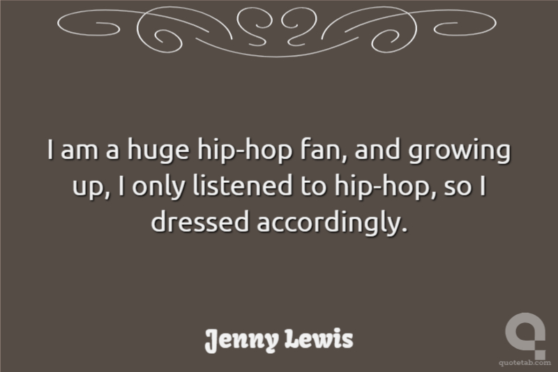 I am a huge hip-hop fan, and growing up, I only listened to hip-hop, so I dressed accordingly.
