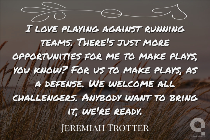 I love playing against running teams. There's just more opportunities for me to make plays, you know? For us to make plays, as a defense. We welcome all challengers. Anybody want to bring it, we're ready.