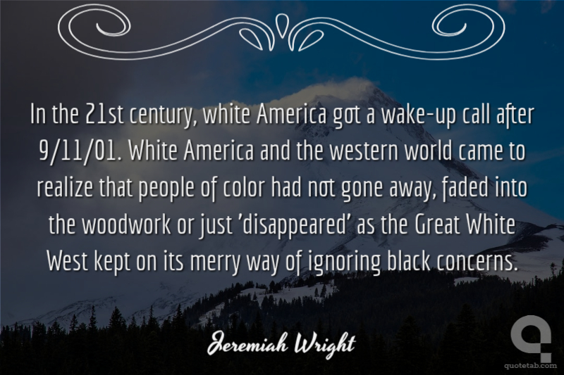 In the 21st century, white America got a wake-up call after 9/11/01. White America and the western world came to realize that people of color had not gone away, faded into the woodwork or just 'disappeared' as the Great White West kept on its merry way of ignoring black concerns.