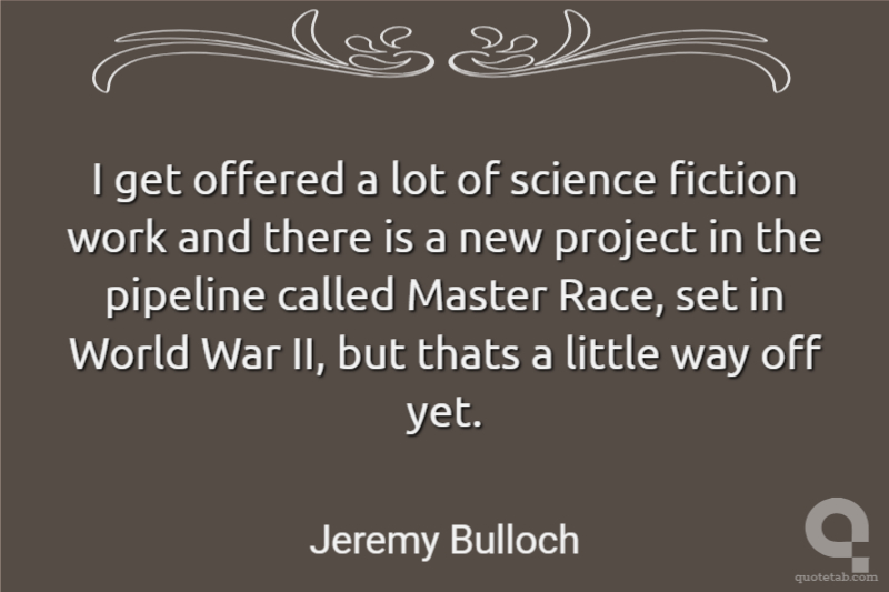 I get offered a lot of science fiction work and there is a new project in the pipeline called Master Race, set in World War II, but thats a little way off yet.