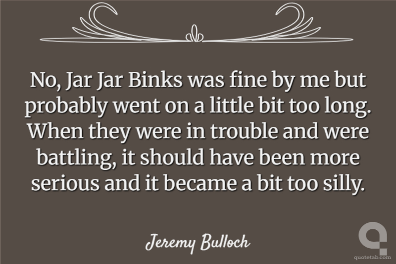 No, Jar Jar Binks was fine by me but probably went on a little bit too long. When they were in trouble and were battling, it should have been more serious and it became a bit too silly.