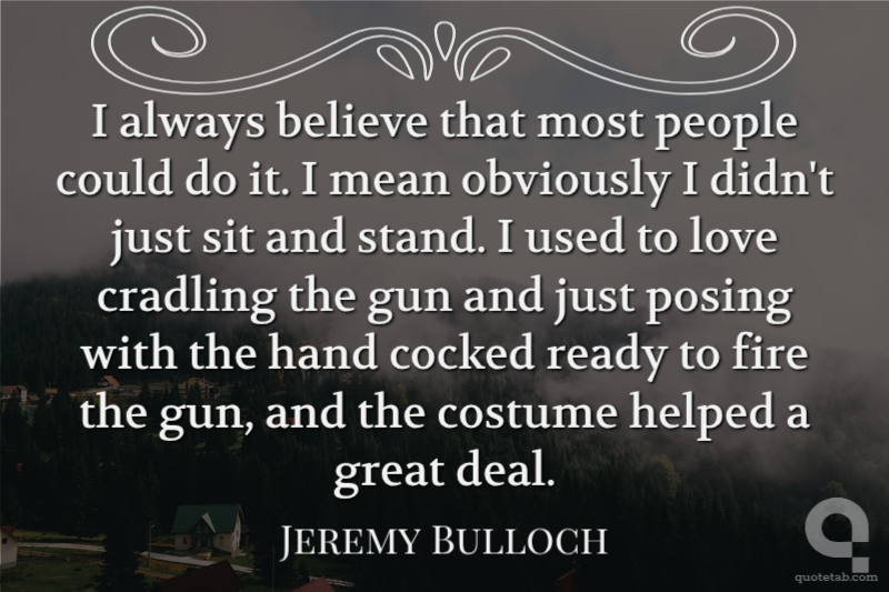 I always believe that most people could do it. I mean obviously I didn't just sit and stand. I used to love cradling the gun and just posing with the hand cocked ready to fire the gun, and the costume helped a great deal.