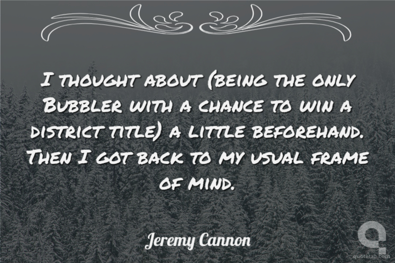 I thought about (being the only Bubbler with a chance to win a district title) a little beforehand. Then I got back to my usual frame of mind.