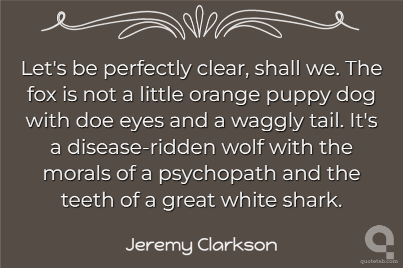 Let's be perfectly clear, shall we. The fox is not a little orange puppy dog with doe eyes and a waggly tail. It's a disease-ridden wolf with the morals of a psychopath and the teeth of a great white shark.