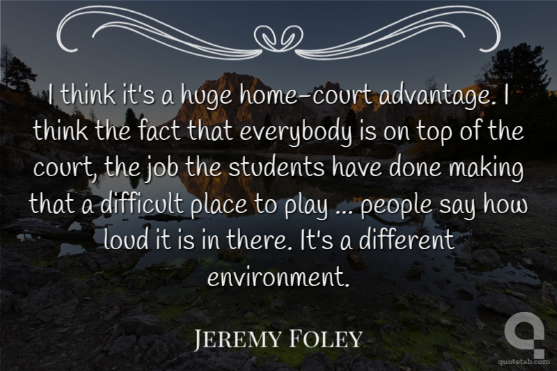 I think it's a huge home-court advantage. I think the fact that everybody is on top of the court, the job the students have done making that a difficult place to play ... people say how loud it is in there. It's a different environment.
