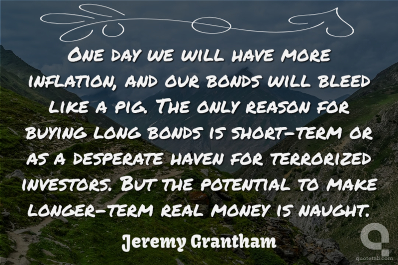 One day we will have more inflation, and our bonds will bleed like a pig. The only reason for buying long bonds is short-term or as a desperate haven for terrorized investors. But the potential to make longer-term real money is naught.