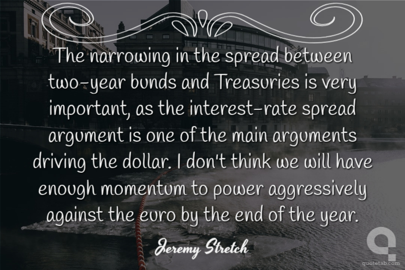 The narrowing in the spread between two-year bunds and Treasuries is very important, as the interest-rate spread argument is one of the main arguments driving the dollar. I don't think we will have enough momentum to power aggressively against the euro by the end of the year.