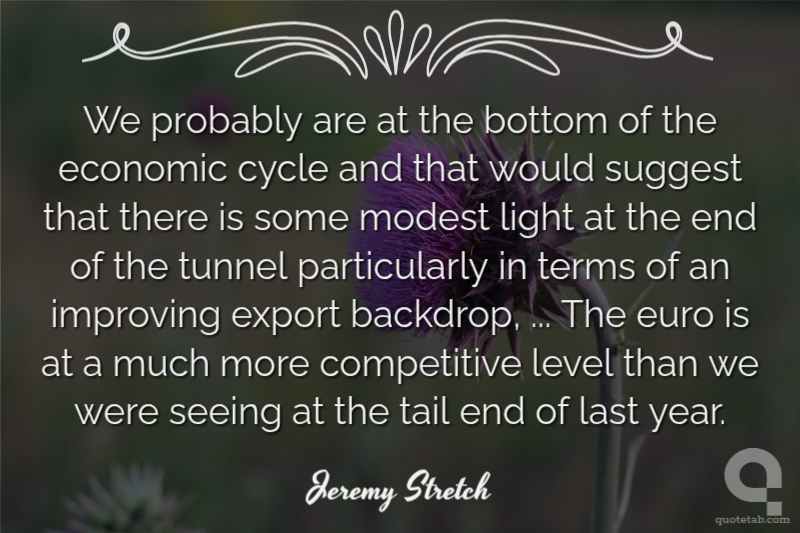 We probably are at the bottom of the economic cycle and that would suggest that there is some modest light at the end of the tunnel particularly in terms of an improving export backdrop, ... The euro is at a much more competitive level than we were seeing at the tail end of last year.