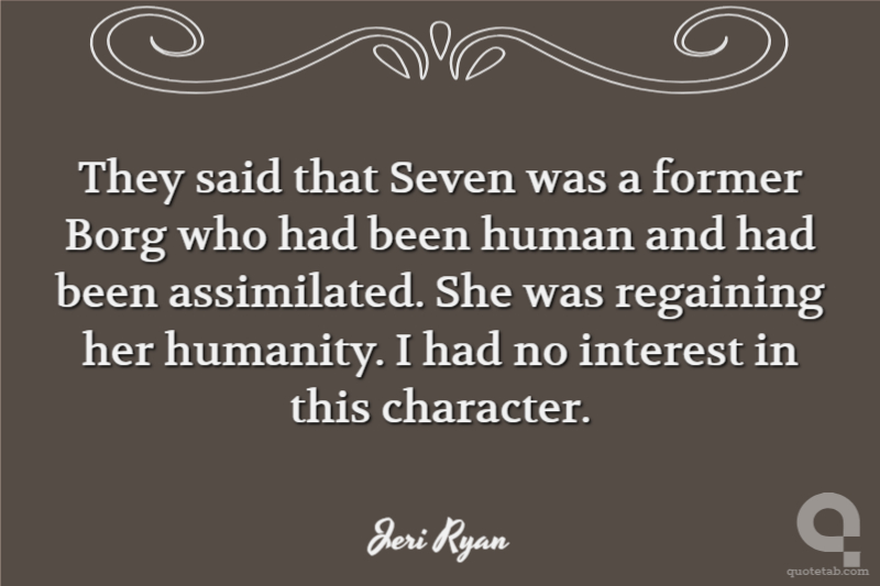 They said that Seven was a former Borg who had been human and had been assimilated. She was regaining her humanity. I had no interest in this character.