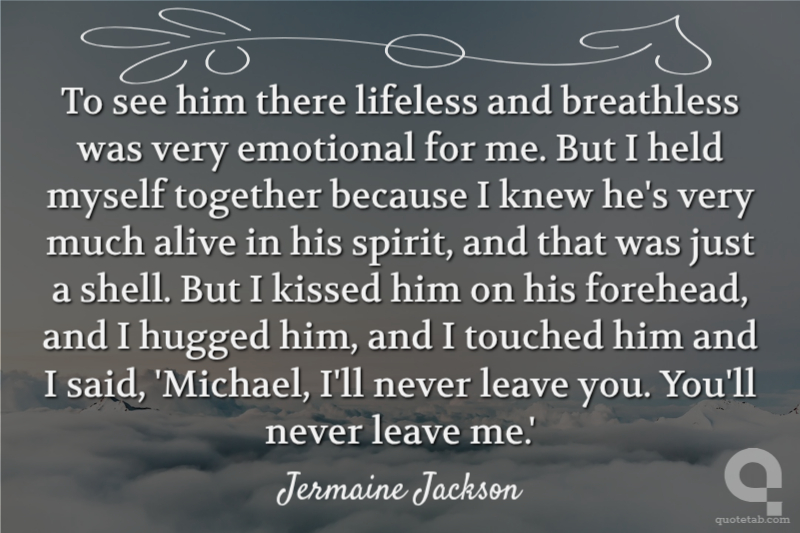 To see him there lifeless and breathless was very emotional for me. But I held myself together because I knew he's very much alive in his spirit, and that was just a shell. But I kissed him on his forehead, and I hugged him, and I touched him and I said, 'Michael, I'll never leave you. You'll never leave me.'