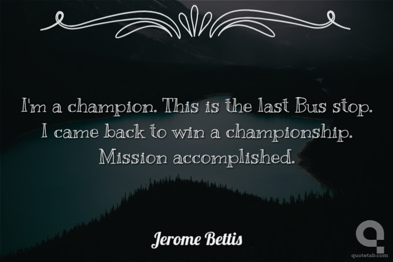 I'm a champion. This is the last Bus stop. I came back to win a championship. Mission accomplished.