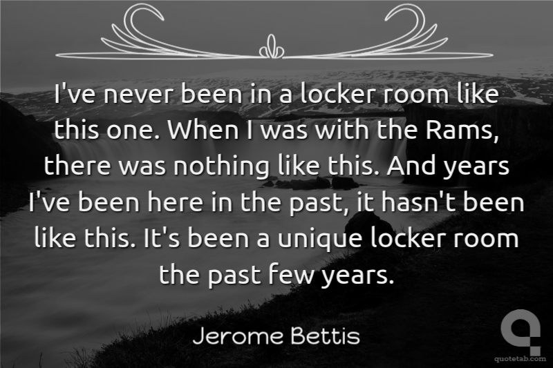 I've never been in a locker room like this one. When I was with the Rams, there was nothing like this. And years I've been here in the past, it hasn't been like this. It's been a unique locker room the past few years.