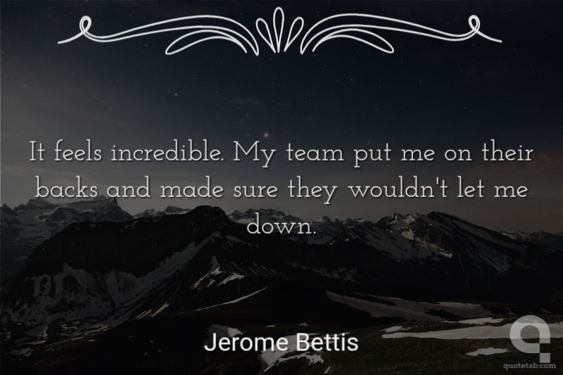 It feels incredible. My team put me on their backs and made sure they wouldn't let me down.
