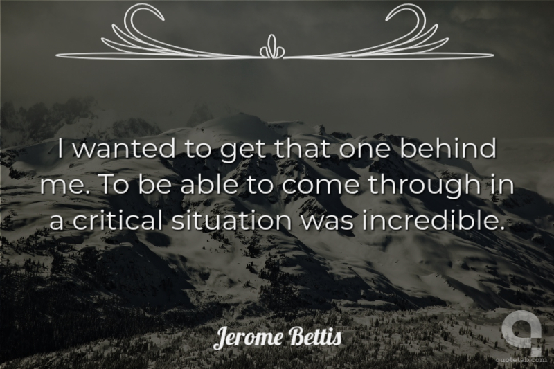 I wanted to get that one behind me. To be able to come through in a critical situation was incredible.