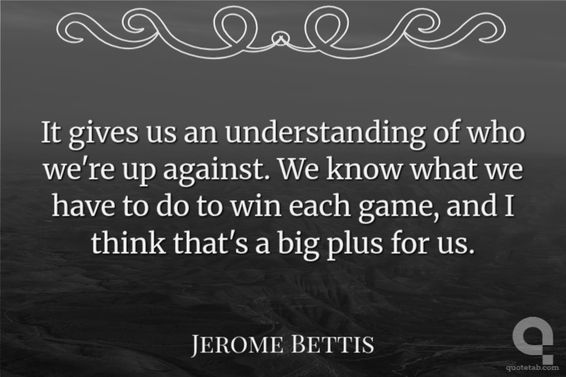 It gives us an understanding of who we're up against. We know what we have to do to win each game, and I think that's a big plus for us.