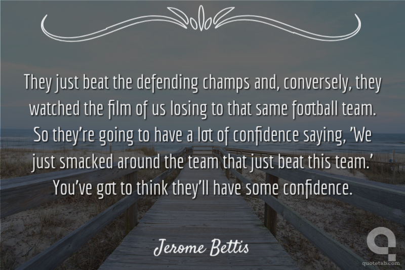 They just beat the defending champs and, conversely, they watched the film of us losing to that same football team. So they're going to have a lot of confidence saying, 'We just smacked around the team that just beat this team.' You've got to think they'll have some confidence.