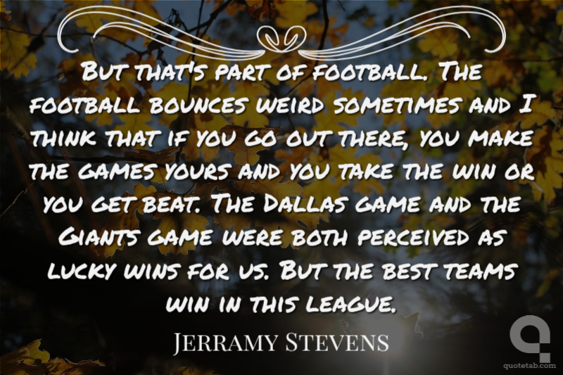 But that's part of football. The football bounces weird sometimes and I think that if you go out there, you make the games yours and you take the win or you get beat. The Dallas game and the Giants game were both perceived as lucky wins for us. But the best teams win in this league.