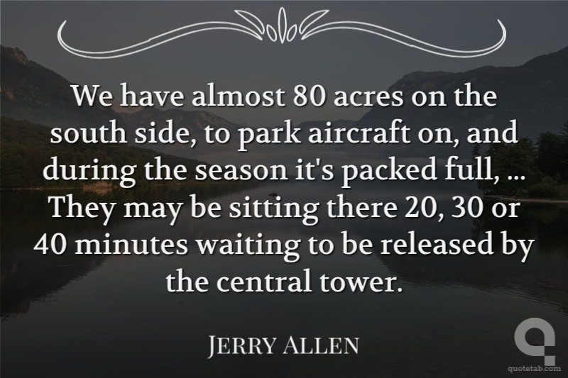 We have almost 80 acres on the south side, to park aircraft on, and during the season it's packed full, ... They may be sitting there 20, 30 or 40 minutes waiting to be released by the central tower.