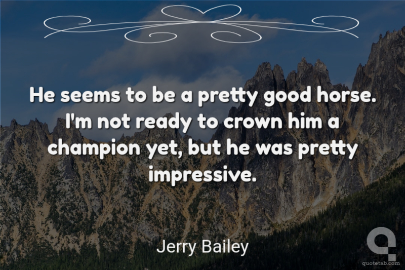 He seems to be a pretty good horse. I'm not ready to crown him a champion yet, but he was pretty impressive.