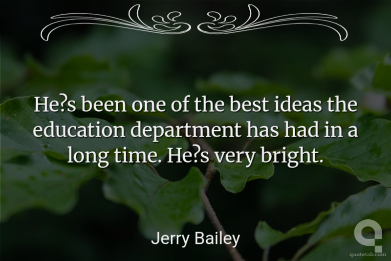 He?s been one of the best ideas the education department has had in a long time. He?s very bright.
